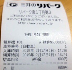Yoshi223のブログ コインパーキングの駐車券 領収書 レシート 2020 12 22分まで反映
