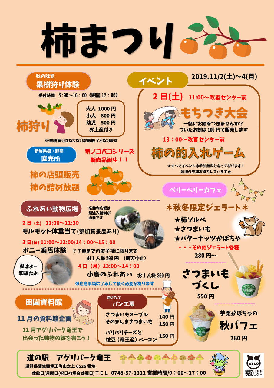 2019年11月2日 土 4日 月 祝 柿まつり のお知らせ 道の駅 アグリパーク竜王ワクワク体験案内