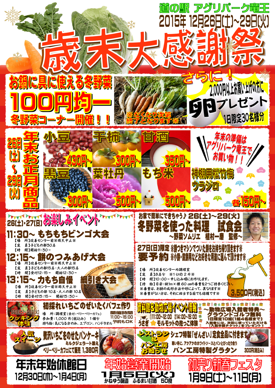 27年12月 道の駅アグリパーク竜王 歳末大感謝祭のお知らせ 道の駅 アグリパーク竜王ワクワク体験案内
