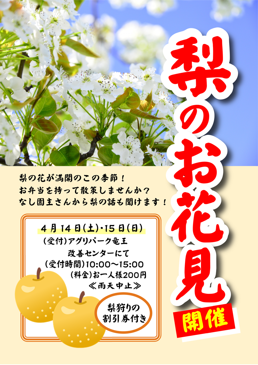 梨のお花見会を開催します 道の駅 アグリパーク竜王ワクワク体験案内