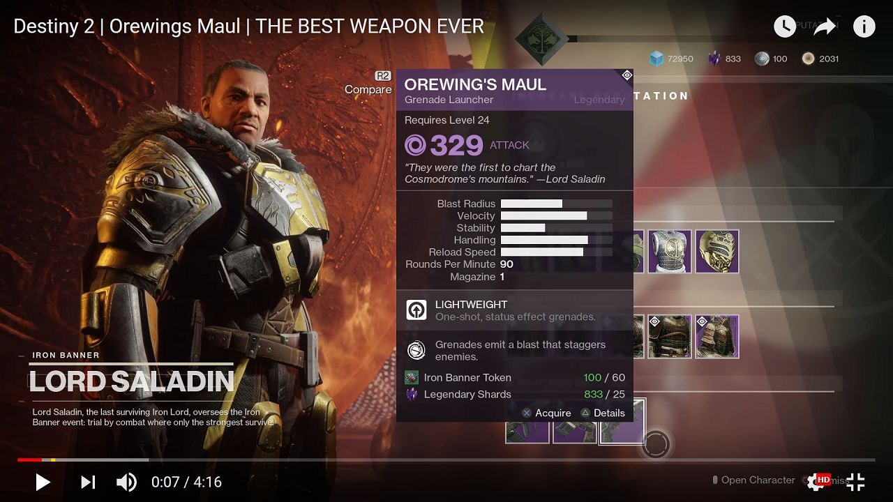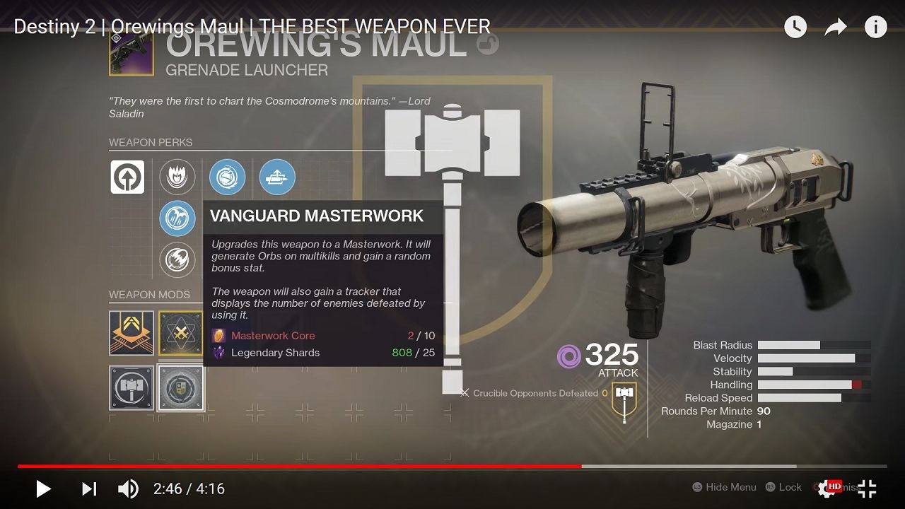 オレウィングの斧 Destiny 2 レジェンダリー グレネードランチャー Possible Rolls Light Gg