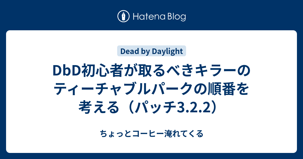 Dbd初心者が取るべきキラーのティーチャブルパークの順番を考える パッチ3 2 2 ちょっとコーヒー淹れてくる