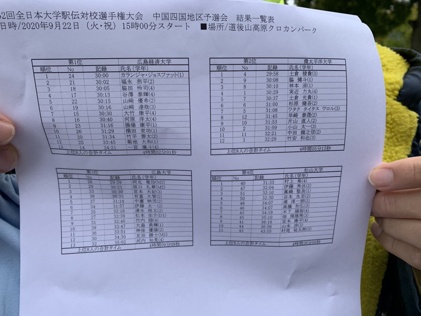 広島大学陸上部長距離 競歩パート On Twitter 結果報告 本日行われました全日本大学駅伝予選会の結果を報告させていただきます 皆さん お疲れ様でした また 多くの方々のご協力ありがとうございました これからも広島大学陸上部をよろしくお願いします