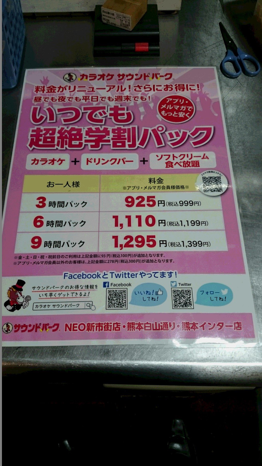 料金案内 福岡 長崎 熊本のカラオケならサウンドパーク